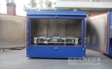 油桶烘箱主要技術參數 1、內膽尺寸:寬2600*高1350*深1450mm; 2、外形尺寸(約):寬3000*高2500(不含馬達高)*深1650mm; 3、溫度范圍:常溫~+150℃可調;